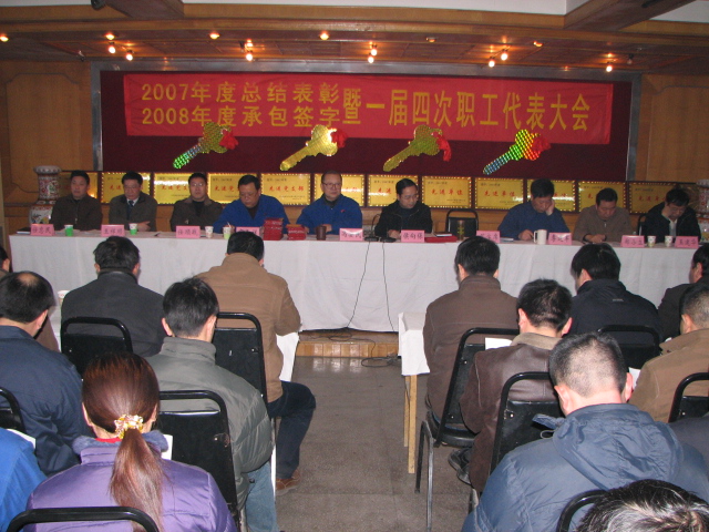 2月4日上午,公司四樓會議室洋溢著節(jié)日的喜慶。公司2007年度總結(jié)表彰、2008年承包合同簽字暨第一屆四次職工代表大會在這里隆重召開。公司領(lǐng)導(dǎo)侯向保、馮安民、宋元祥、李建軍、鄭小立、王翔順、王建華、任順戰(zhàn)、任忠民和全體中級管理人員,2007年度“勞動模范”、“模范黨員”及職工代表、各團支部書記等近200人參加會議。會議由公司黨委副書記馮安民主持。